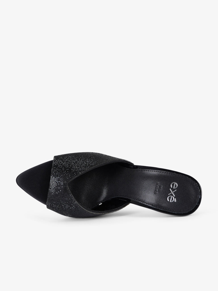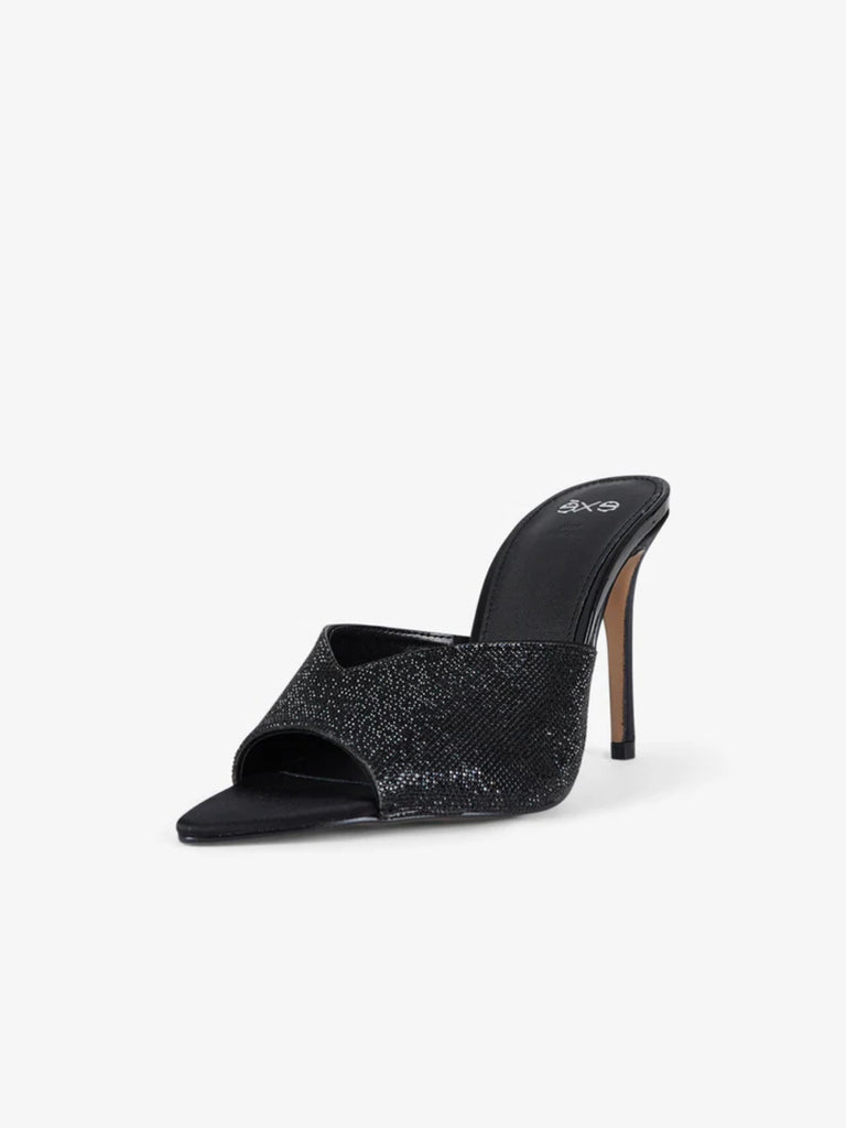 Details: Sandale in schwarz mit Glitzer überzogen. Elegant und einzigartig, perfekt um Ihrem Look einen Hauch von Klasse zu verleihen.