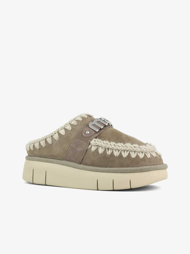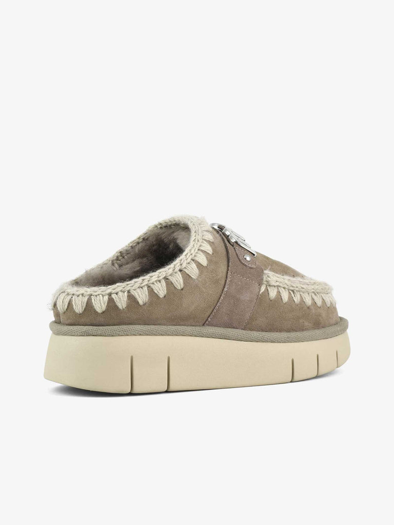 Details: Der Bounce Clog mit Metallic-Logo ist fachmännisch handgefertigt aus echtem, doppeltem Schafsleder und Häkeldetails, unverwechselbar für mou. Das gepolsterte Lederfußbett und die leichte EVA- und Gummisohle sorgen für einen hohen Tragekomfort.