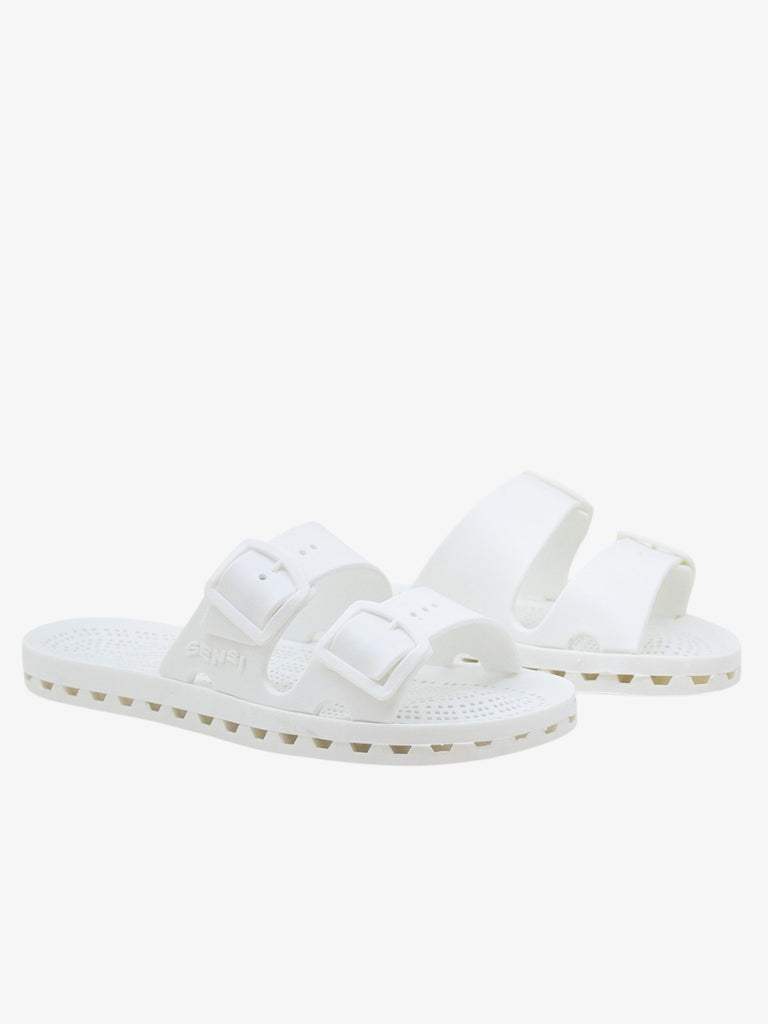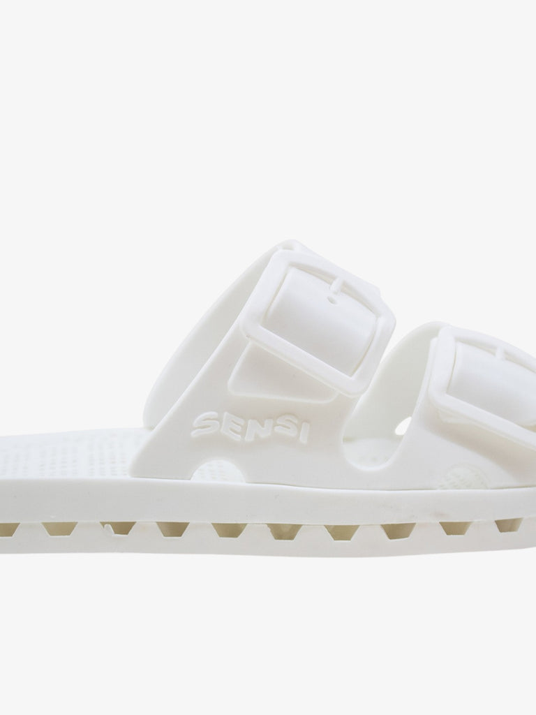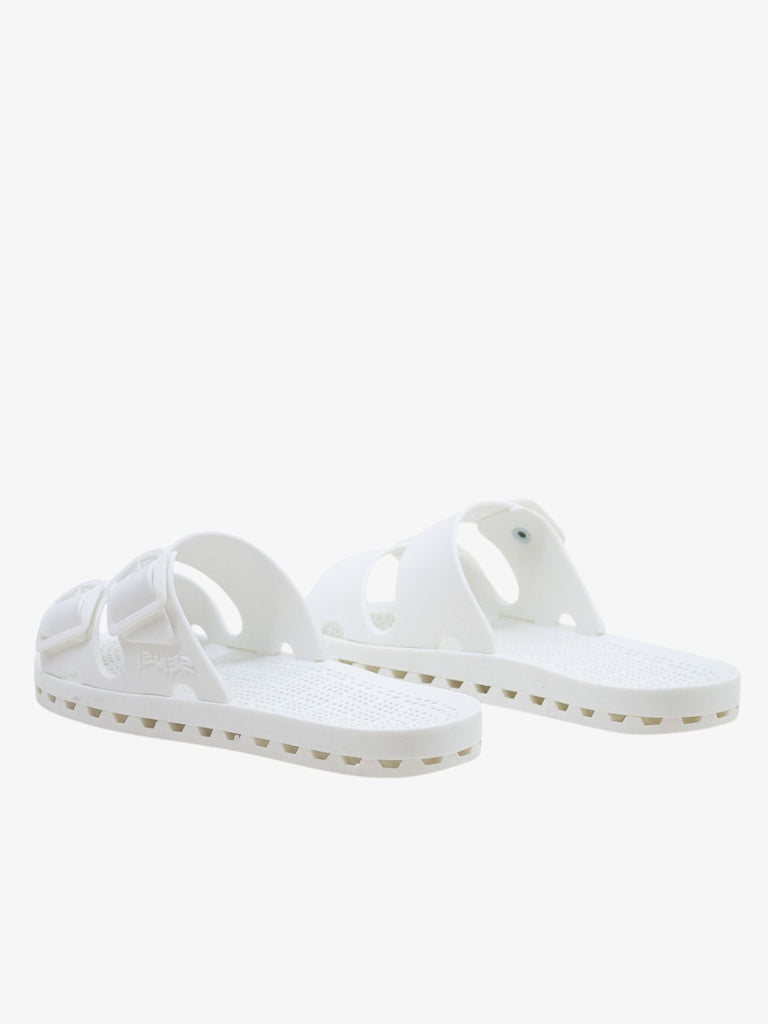 Details: Die Jolla City zeichnen sich durch eine spezielle PVC-Sohle aus, die durch die mechanische Verbindung einer perforierten Einlegesohle mit einem Boden mit Abflusskanälen entsteht. Durch die Löcher in der Innensohle, die mit den Kanälen im Boden verbunden sind, kann das Wasser abfließen, und durch die Schlitze entlang des Umfangs der Sandale wird es nach außen abgeleitet. Die Sandalen sind vollständig recyclingfähig, sobald sie das Ende ihrer Nutzung erreicht haben, und können zu 100 Prozent recycelt werden.
