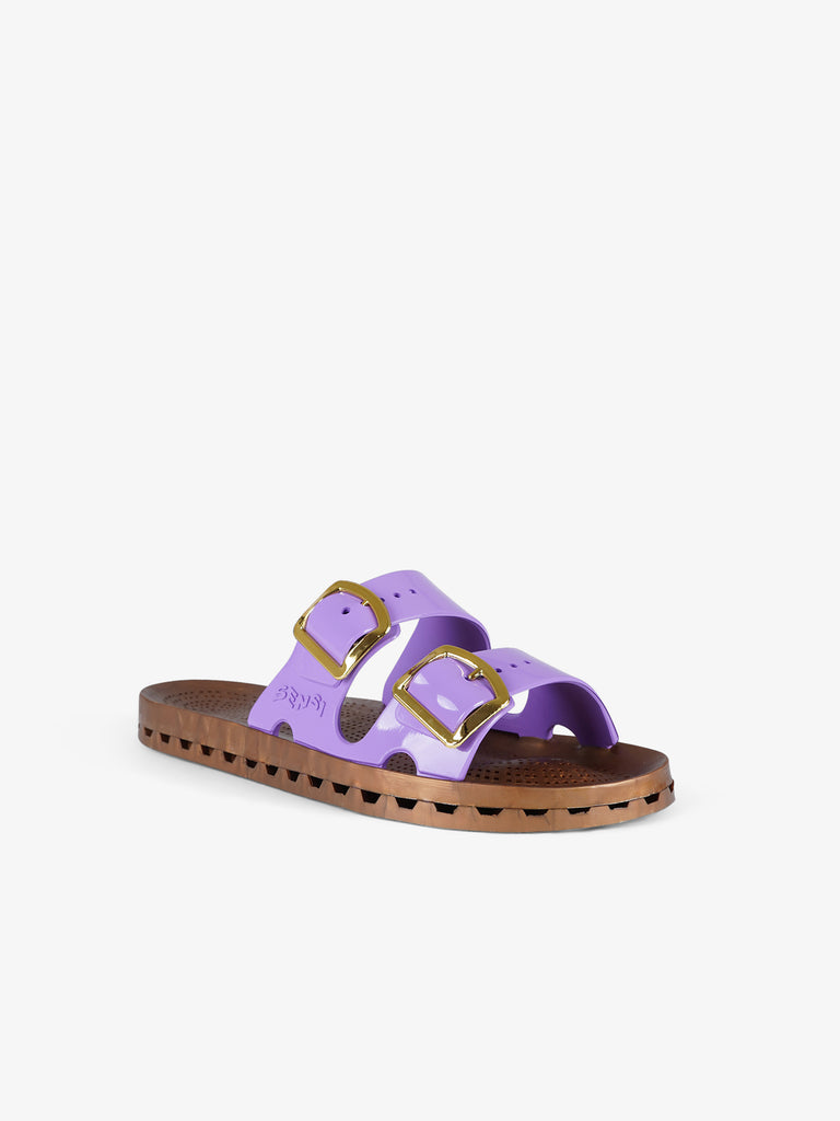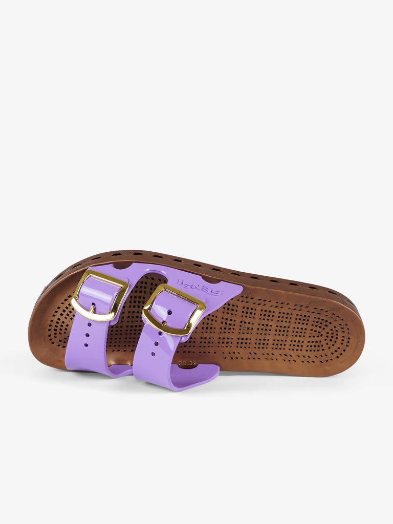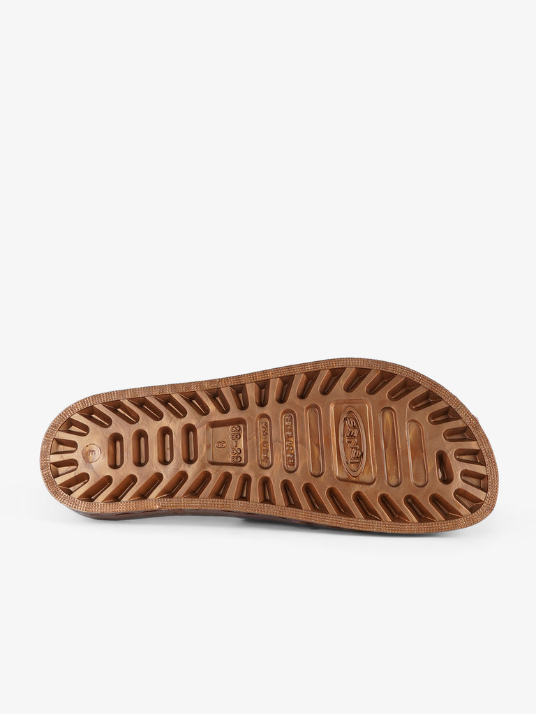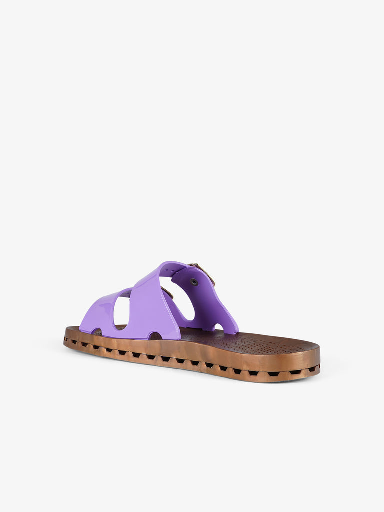 Details: Die Jolla Prestigio zeichnen sich durch eine spezielle PVC-Sohle aus, die durch die mechanische Verbindung einer perforierten Einlegesohle mit einem Boden mit Abflusskanälen entsteht. Die Löcher in der Innensohle, die mit den Kanälen im Boden in Verbindung stehen, lassen das Wasser abfließen, das durch die Schlitze entlang des Umfangs der Sandale nach außen abgeleitet wird. Die Sandalen sind vollständig recyclingfähig, sobald sie das Ende ihrer Nutzung erreicht haben, mit bis zu 100 Prozent vollständigem Recycling.