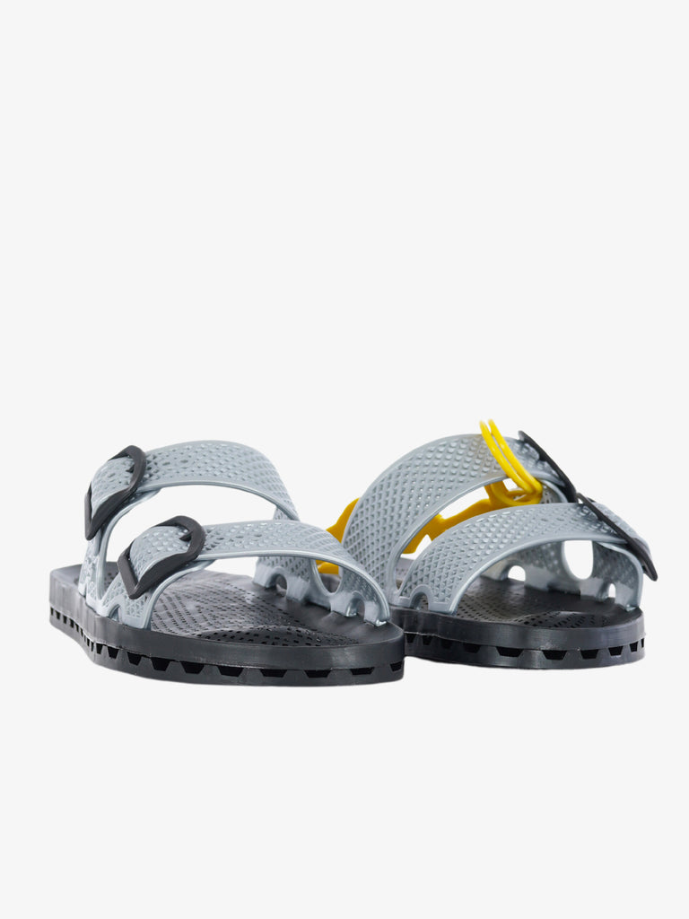 Details: Die La Jolla Urban zeichnen sich durch eine spezielle PVC-Sohle aus, die durch die mechanische Verbindung einer perforierten Einlegesohle mit einem Boden mit Abflusskanälen entsteht. Die Löcher in der Einlegesohle, die mit den Kanälen im Boden verbunden sind, lassen das Wasser abfließen, das durch die Schlitze entlang des Umfangs der Sandale nach außen abgeleitet wird.