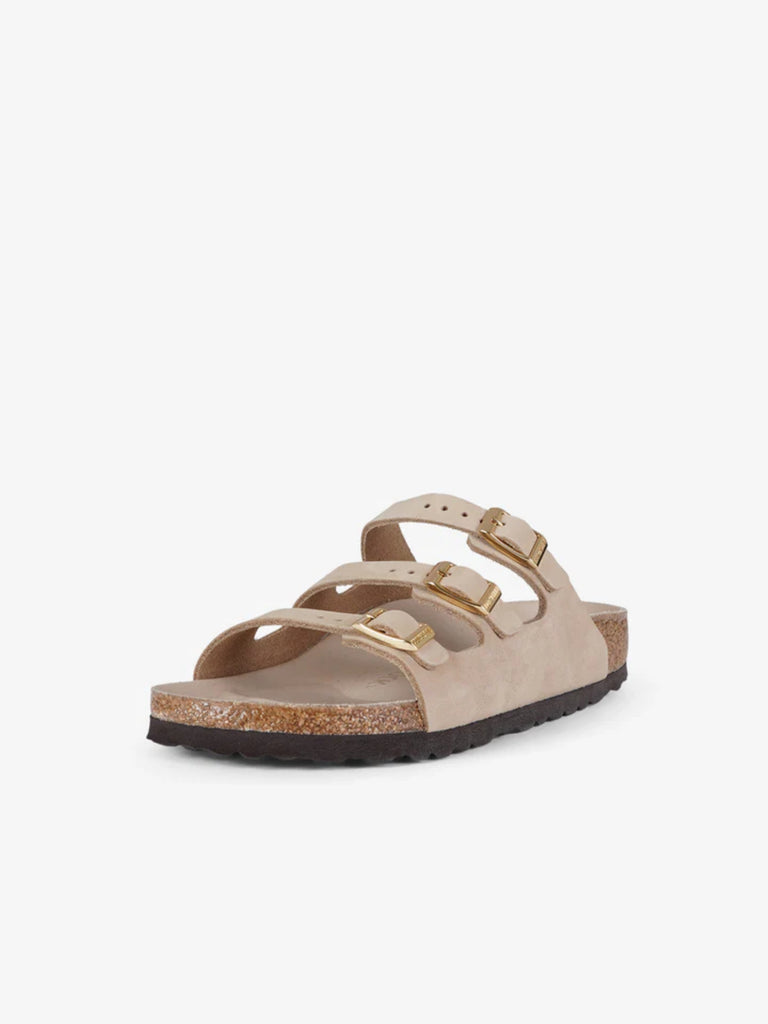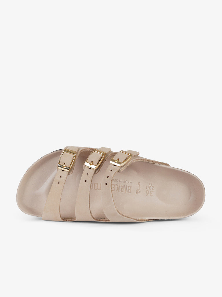 Details: Florida is the sandal for those who are always on their feet. This three-strap design holds the foot securely and offers optimal comfort. The semi-exquisit footbed is lined with soft smooth leather in a color coordinated with the shoe. The upper is made of fine, soft nubuck leather that is fantastic with its natural, rustic look.