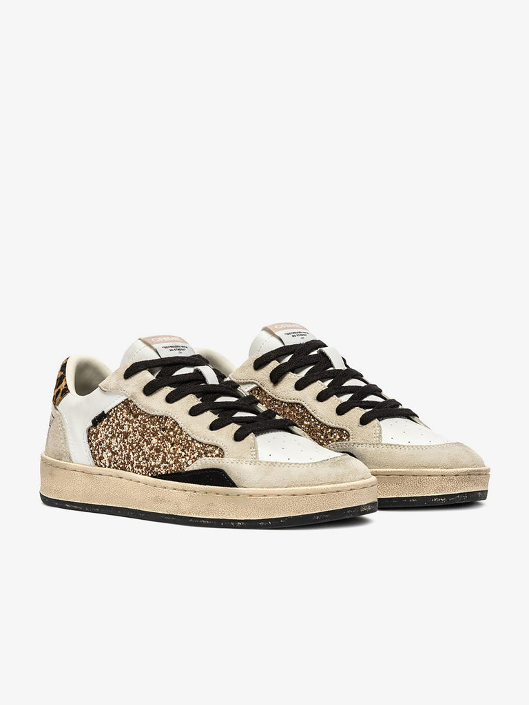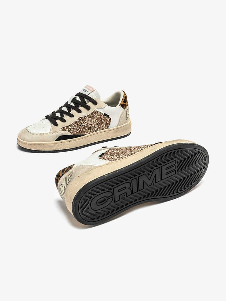 Details: Sneaker made from high-quality Made in Italy materials. Leather upper with suede and pony skin, crackle foil details. Heel. Heel with CRIME logo. White leather tongue with fabric logo label. Laces.