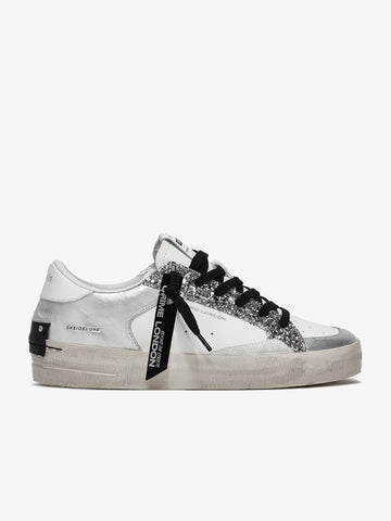 Details: Sneaker made of high quality materials Made in Italy. Leather upper with suede piping, heel and details. Distressed effect on upper and sole. Tongue with logoed leather label and "Beyond The Streets" printed text. Leather patch on back secured with micro screws. Laces. Unique rubber logo tag. Leather and fabric lining. Ivory wrapped faux leather sole with distressed processing.