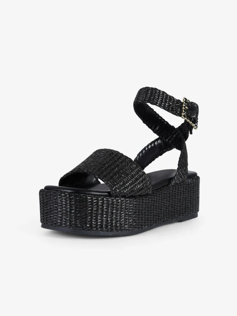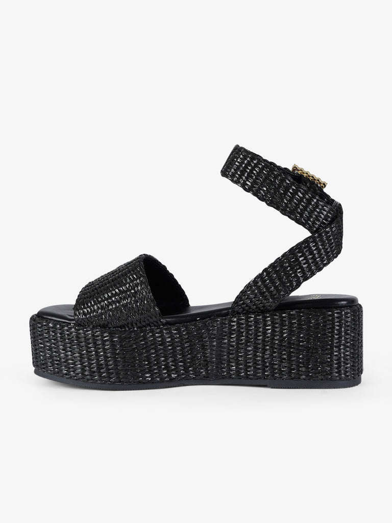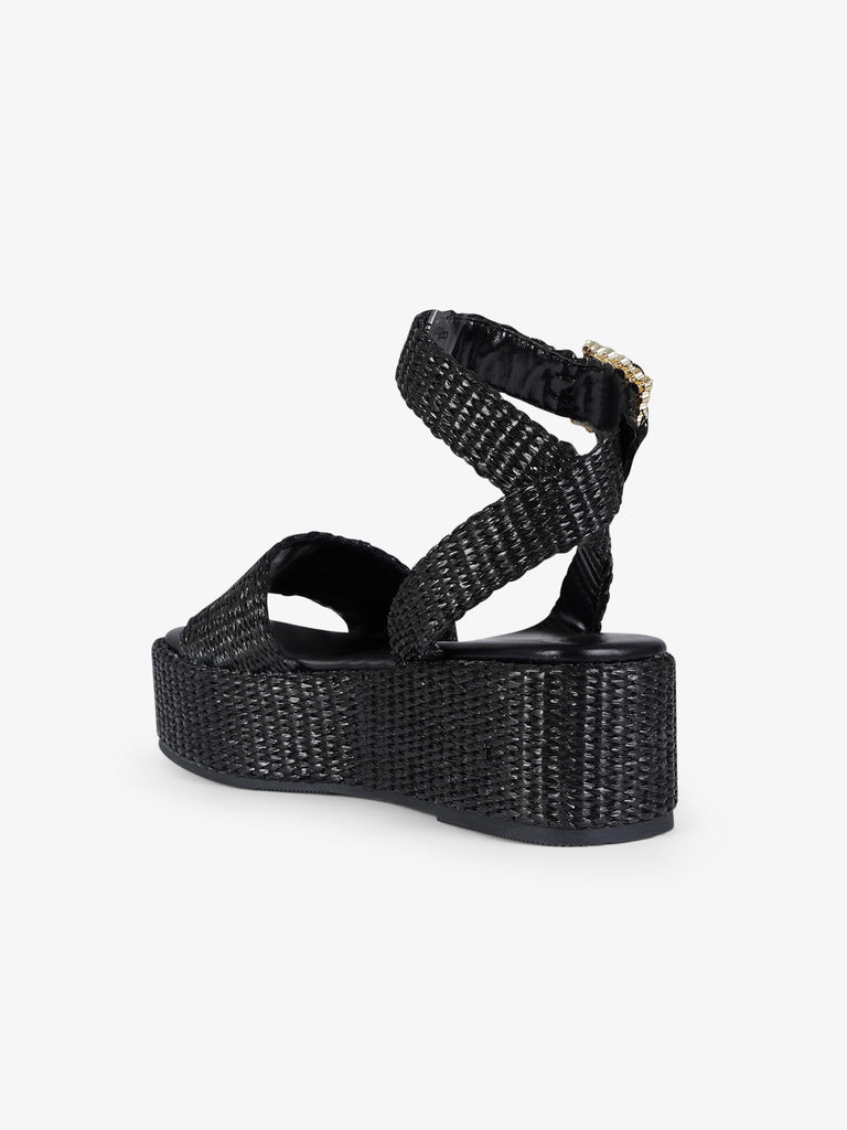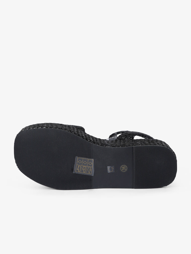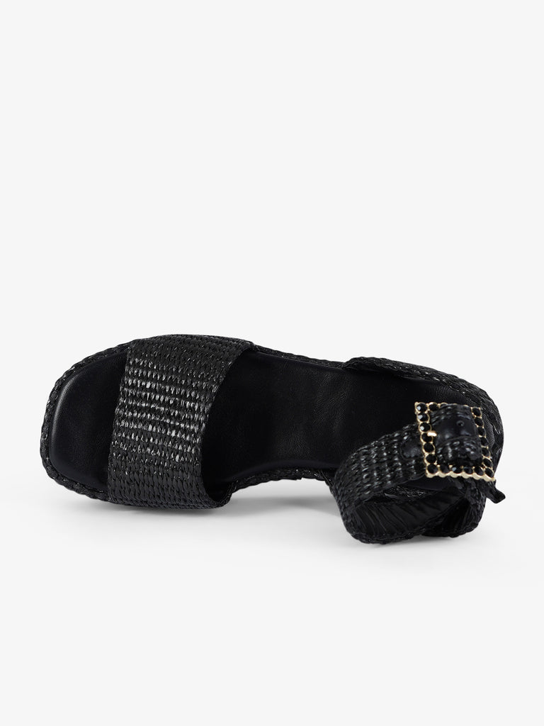 black raffia women's strap wedge sandals