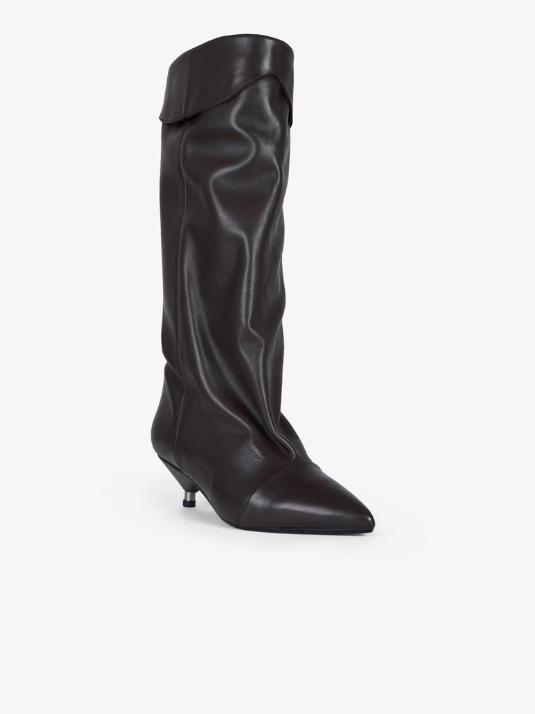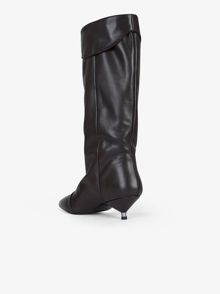 Details: The Natalia boot by Gisel Moire combines elegance and character in a modern and sophisticated design. Made of soft leather, it features a slouchy silhouette that wraps the leg naturally, a tapered toe and a refined kitten heel that ensures comfort and style. Perfect for daytime and evening wear, it is the must-have accessory for a contemporary, feminine look. Kitten heel height: approx. 38-40 cm