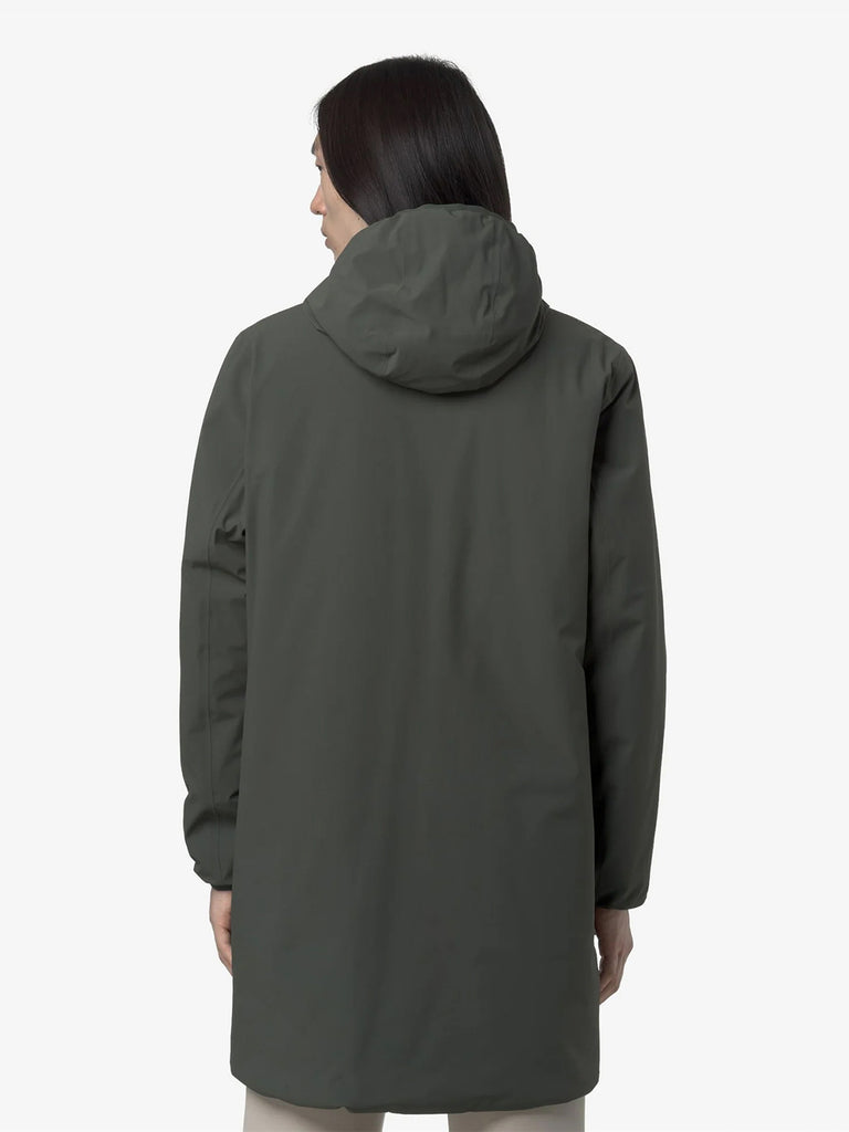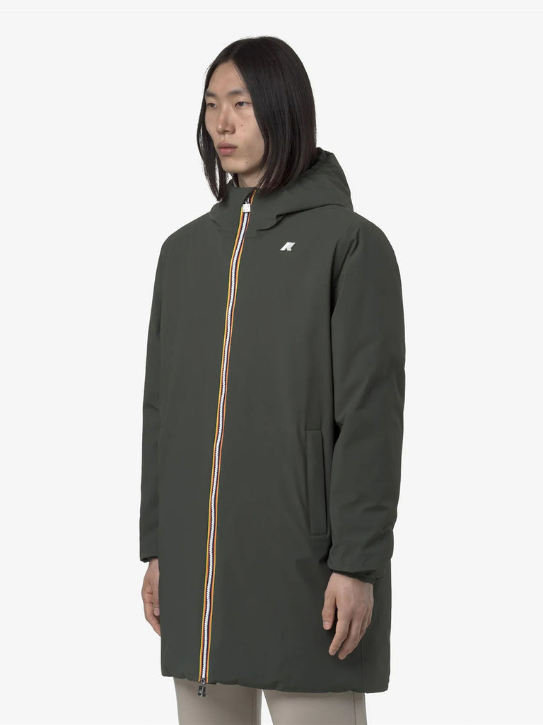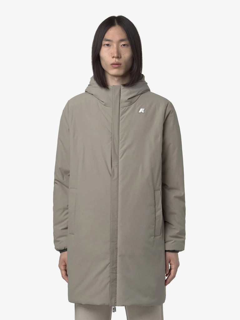 Details: The Jacob men's three-quarter length jacket is K-Way's proposal for mid-season and early cold weather. The model combines style and functionality and is suitable for different combinations and occasions of use thanks to its reversible design. The exterior is made of waterproof stretch polyester, while the interior is finished in windproof polyester in a contrasting color. Comfort is ensured by wadding padding that offers a medium degree of warmth and heat-taped seams with strong insulating power.