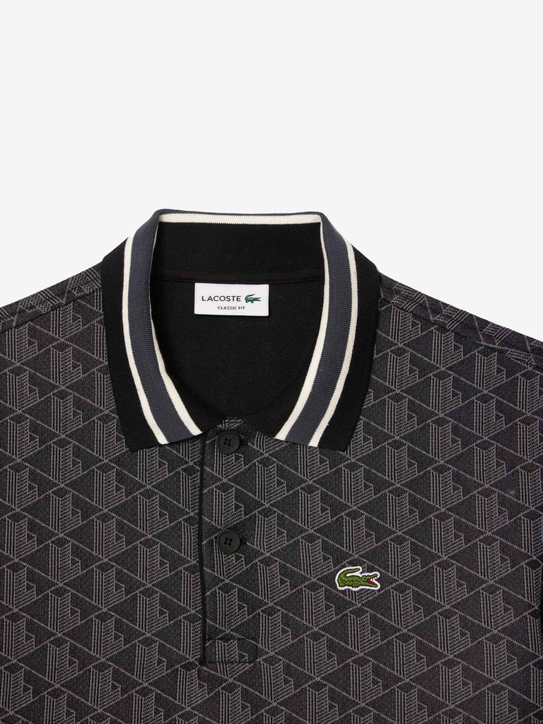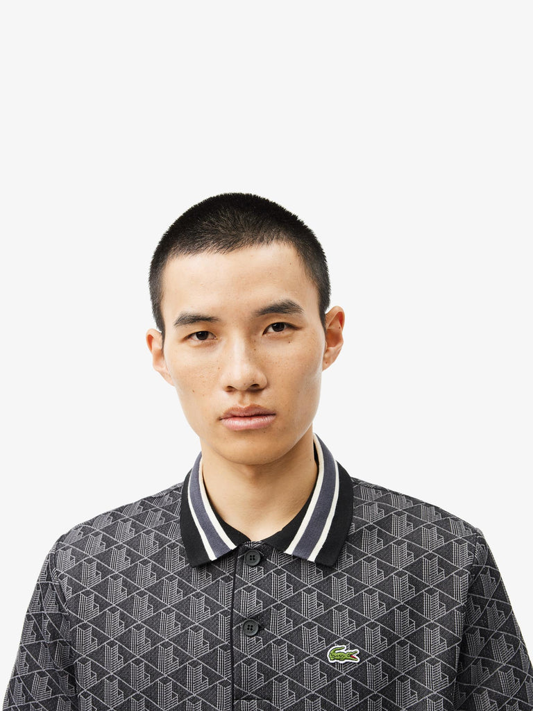Details: This polo shirt offers a new, original take on the iconic design created by Lacoste in 1933. The jacquard knit monogram motif, ribbed trim and contrasting striped collar will help you stand out from the crowd. A distinctly modern design that blends comfort and elegance.