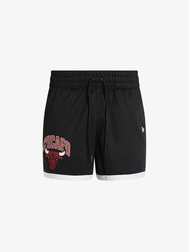 Details: Chicago Bulls NBA Team Logo Shorts. Chicago Bulls logo on right leg. New Era flag embroidered on left pocket