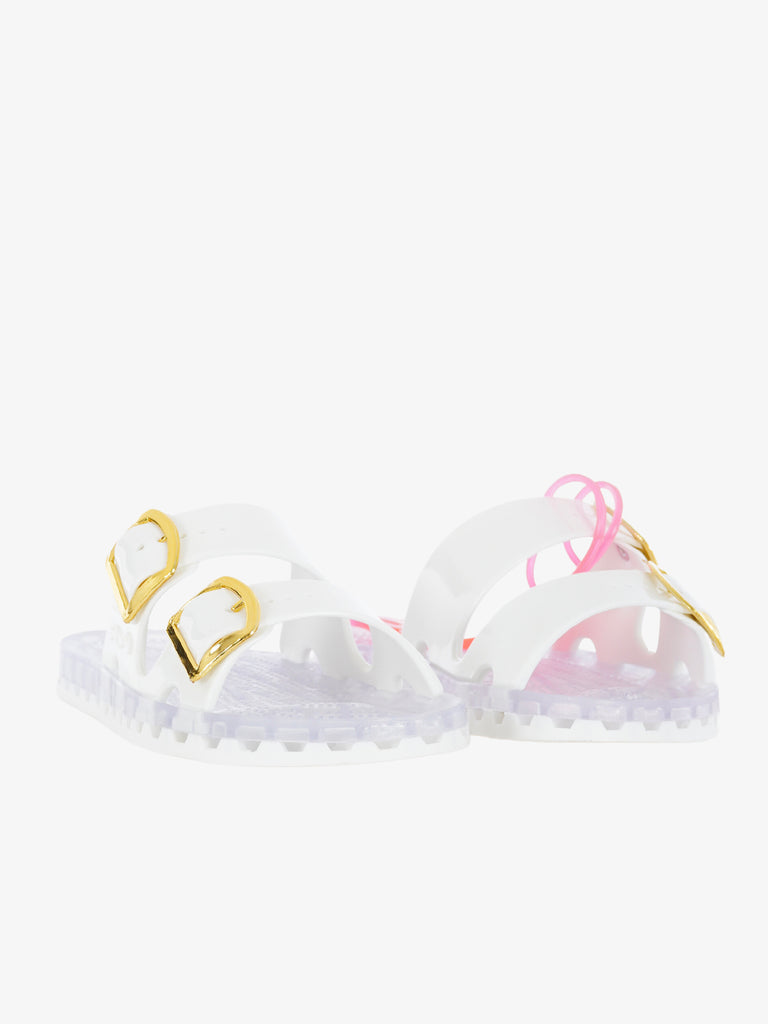 Details: The Jolla Flamingo have a dominant feature; the special PVC sole obtained by mechanically coupling a perforated insole, to a bottom with runoff channels. Holes on the insole communicating with the channels in the bottom allow water to drain away, which through slits along the perimeter of the sandal is expelled outward. The sandals are fully compliant to be recycled once they reach the end of their use with up to 100 percent complete recycling.