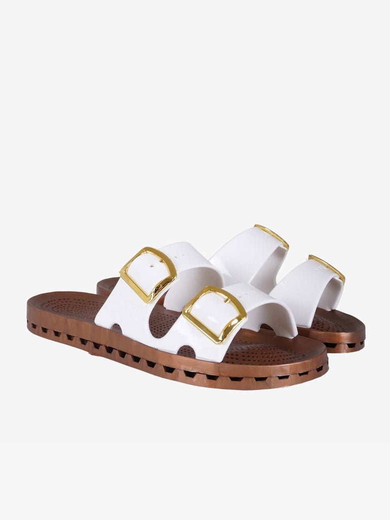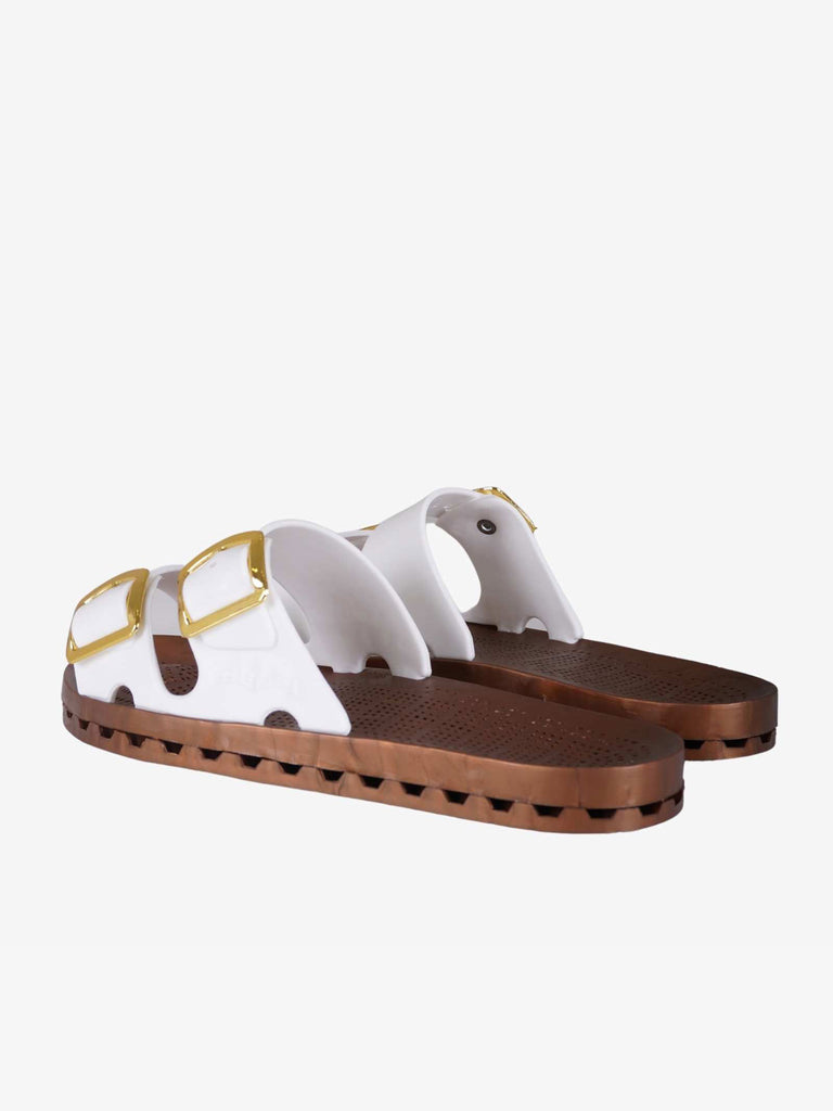 Details: The Jolla Prestigio have a dominant feature; the special PVC sole obtained by mechanically coupling a perforated insole, to a bottom with runoff channels. The holes on the insole communicating with the channels in the bottom allow water to drain away, which through the slits along the perimeter of the sandal is expelled outward. The sandals are fully compliant to be recycled once they reach the end of their use with up to 100 percent complete recycling.