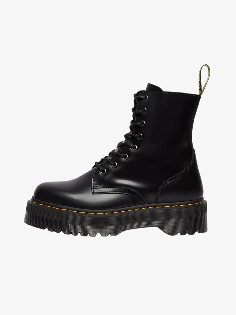 La suela Bex, un cruce entre la clásica suela acolchada y una plataforma Quad, es perfecta para quienes desean un toque extra de carácter. La línea de calzado chunky, por su parte, presenta siluetas icónicas de Dr. Martens a las que se añade una suela de plataforma, como en el caso del anfibio Jadon.