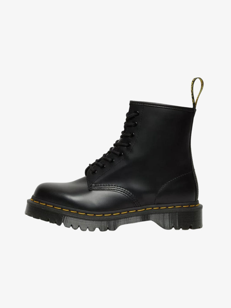 La larga historia de Dr. Martens comenzó en 1901, cuando los empresarios Griggs y Jones empezaron a fabricar botas para los mineros y el ejército británico. Desde entonces, la marca ha evolucionado y abrazado el mundo de la moda, convirtiéndose en un icono de estilo y rebeldía. El 1 de abril de 1960 se lanzó al mercado la bota Original 1460. Esta bota de 8 ojetes, duradera y versátil, ha sido adoptada por librepensadores y rebeldes de todas las generaciones. El diseño clásico e inconfundible de la 1460 incluye piel lisa Dr. Martens, bordes estriados, correa trasera con logotipo, costuras amarillas y una cómoda suela acolchada.