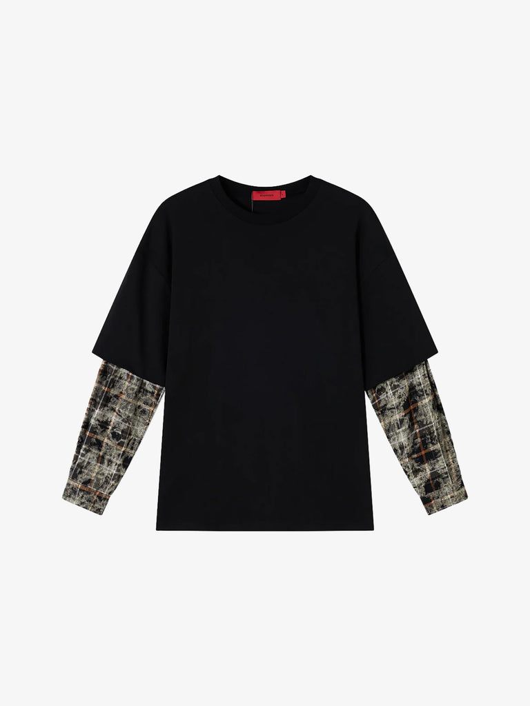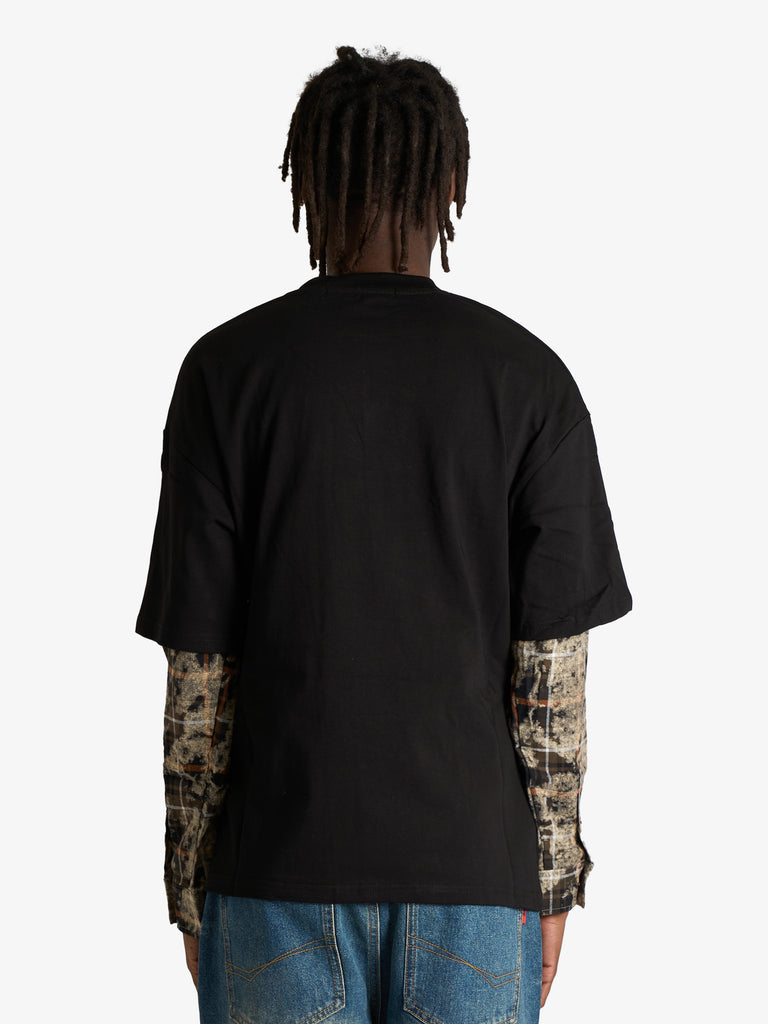 Detalles: La manga larga Acid redefine el look a capas. Esta pieza única presenta un diseño dos en uno sin costuras con un corte clásico de camiseta negra superpuesto con mangas largas tratadas con un llamativo efecto lavado ácido.