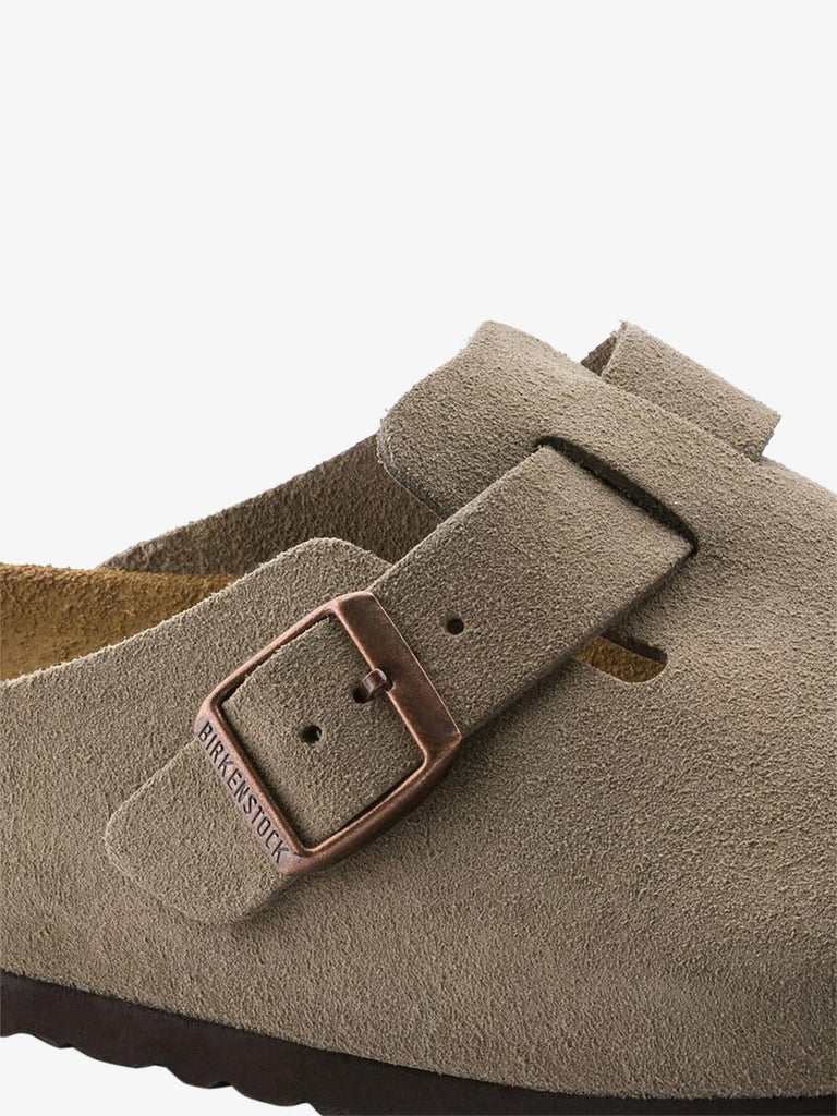 Detalles: El zueco BIRKENSTOCK Boston es un auténtico clásico que se puede llevar impecable todo el año. La plantilla Soft Footbed aumenta la comodidad de uso gracias al inserto de espuma adicional: un auténtico mimo para tus pies todo el tiempo que lo lleves puesto. A su diseño natural contribuye el empeine de ante especialmente suave que abraza el pie como una segunda piel.