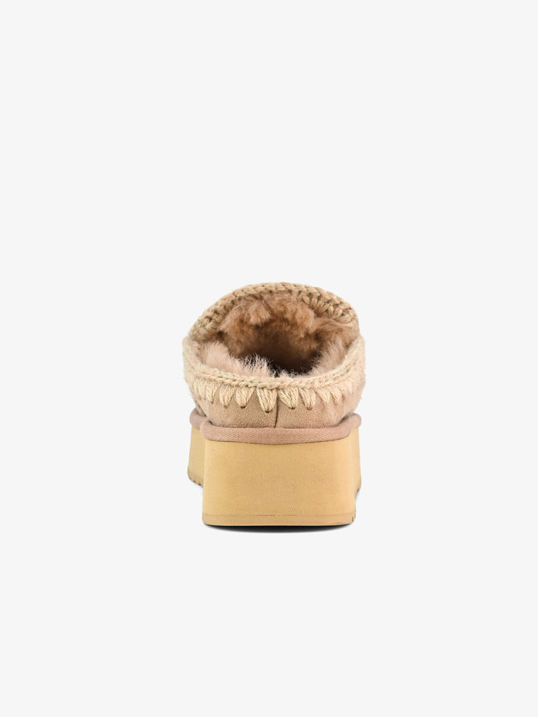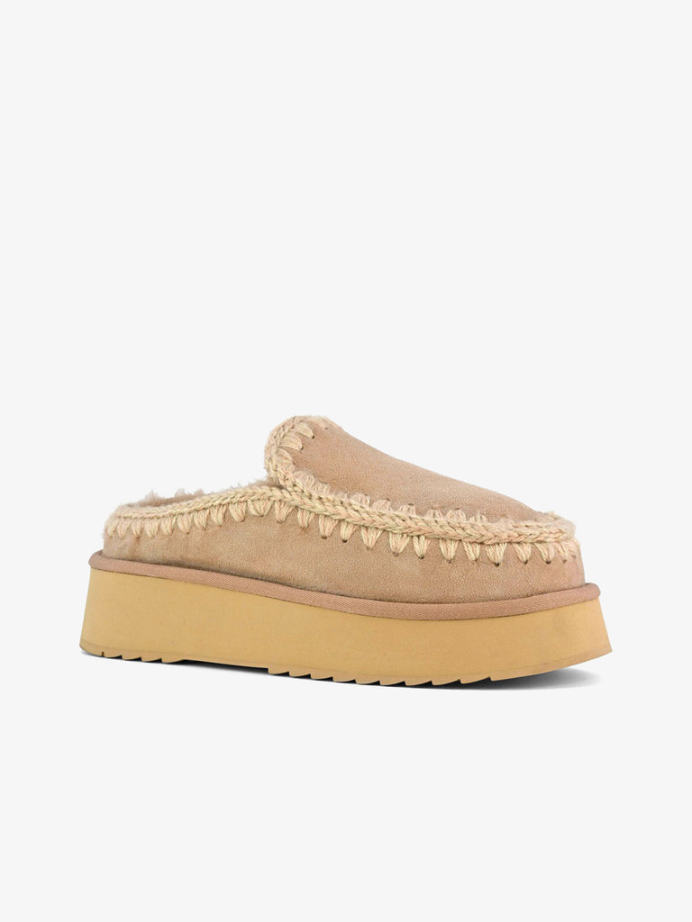 Detalles: Novedad para el otoño-invierno 2024: el comodísimo zueco con plataforma slip-on esquimal está confeccionado a mano de forma experta con lujoso ante y cuenta con la costura de ganchillo de lana característica de mou. Increíblemente cómodo y duradero con una suela de goma EVA.