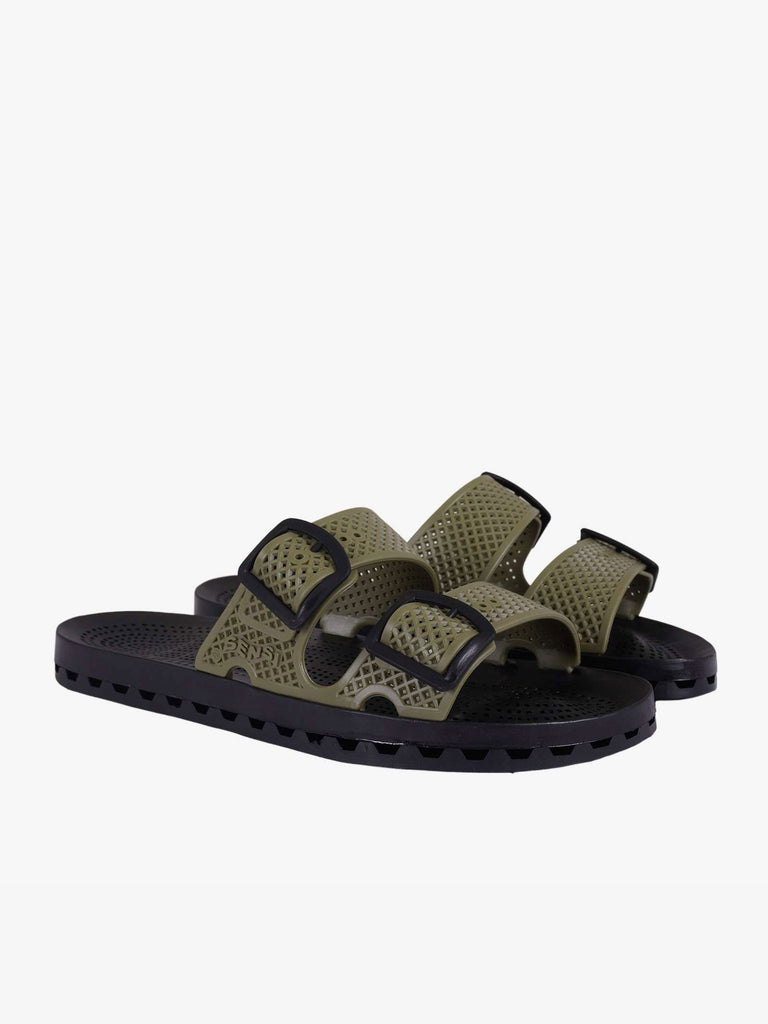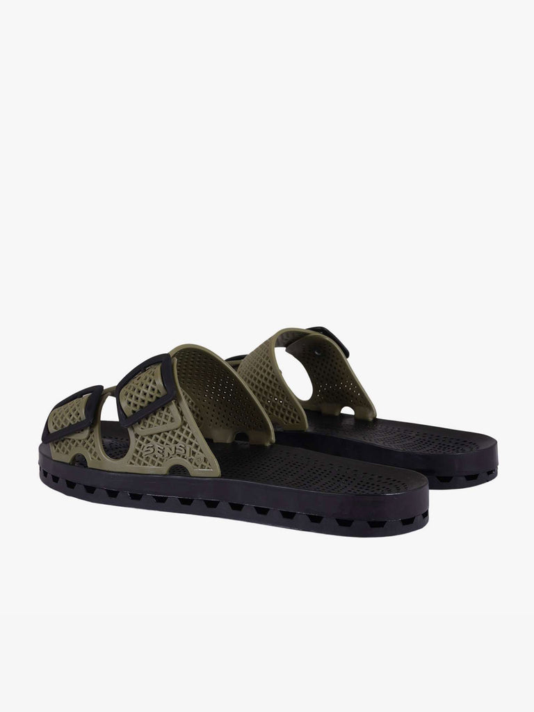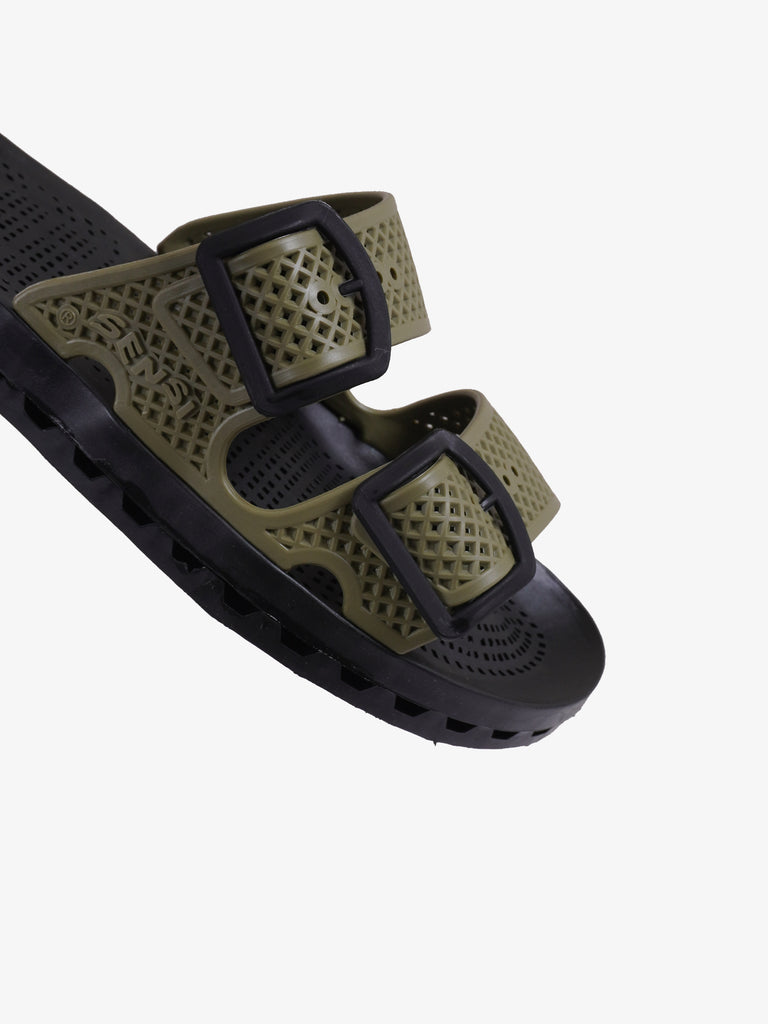 Detalles: La Jolla Urban, tienen una característica dominante; la suela especial de PVC obtenida acoplando mecánicamente una plantilla perforada, a un fondo con canales de escurrimiento. Los orificios de la plantilla en comunicación con los canales del fondo, permiten el drenaje del agua, que a través de las rendijas a lo largo del perímetro de la sandalia es expulsada hacia el exterior.
