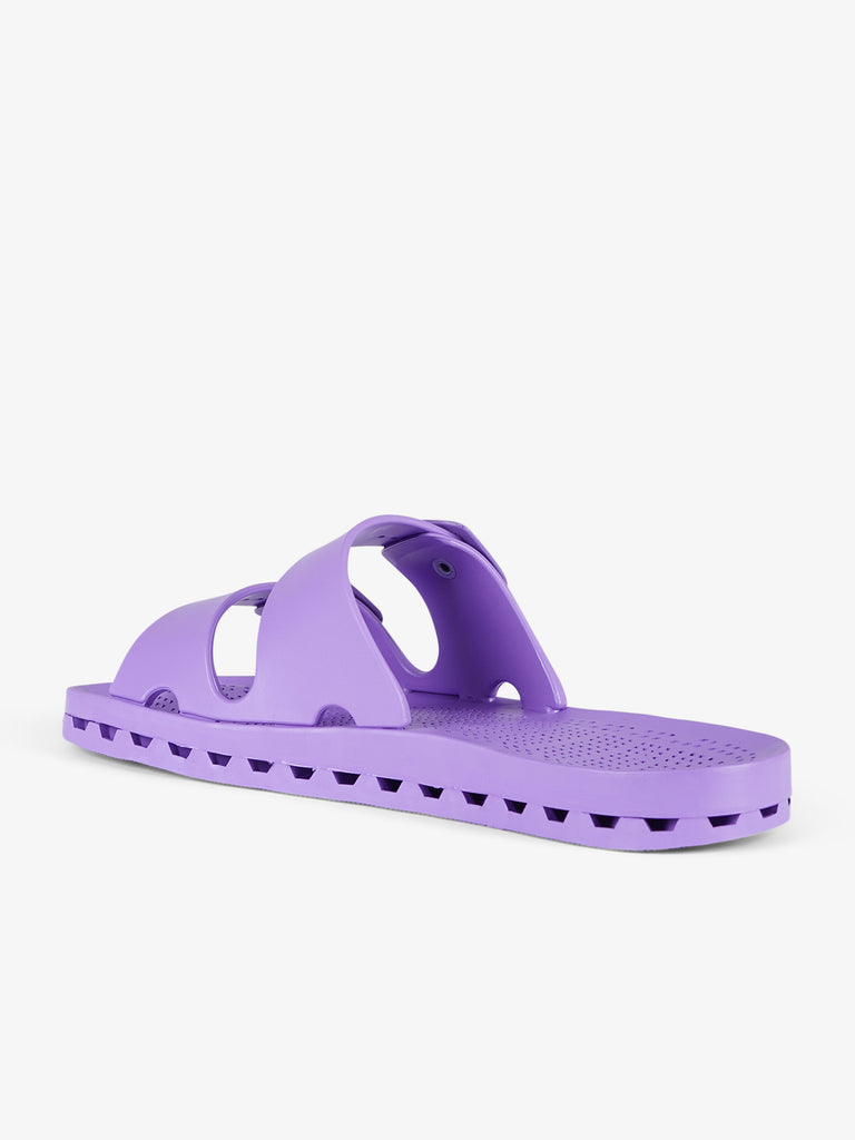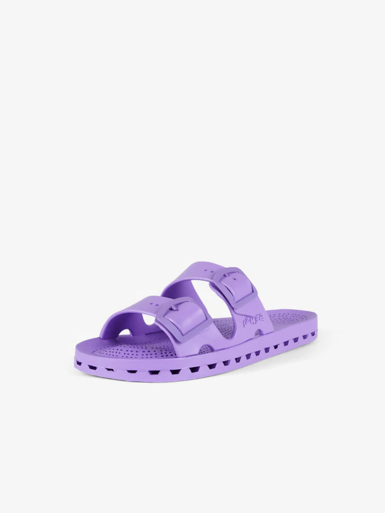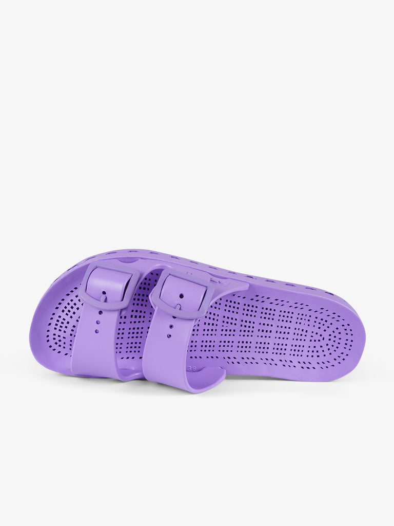 Detalles: Las Jolla City tienen una característica dominante; la suela especial de PVC obtenida acoplando mecánicamente una plantilla perforada, a un fondo con canales de escurrimiento. Los orificios de la plantilla que comunican con los canales de la parte inferior permiten que el agua se escurra, y a través de unas hendiduras a lo largo del perímetro de la sandalia es expulsada hacia el exterior. Las sandalias cumplen todos los requisitos para ser recicladas una vez que llegan al final de su uso, con un reciclado completo de hasta el 100%.