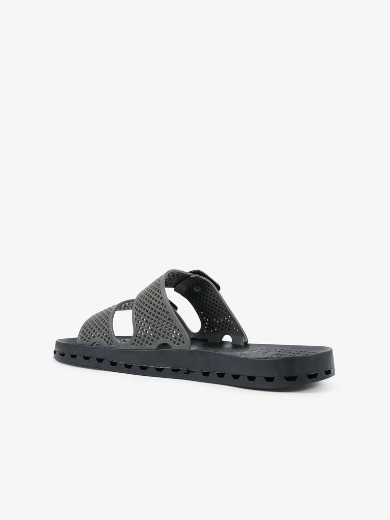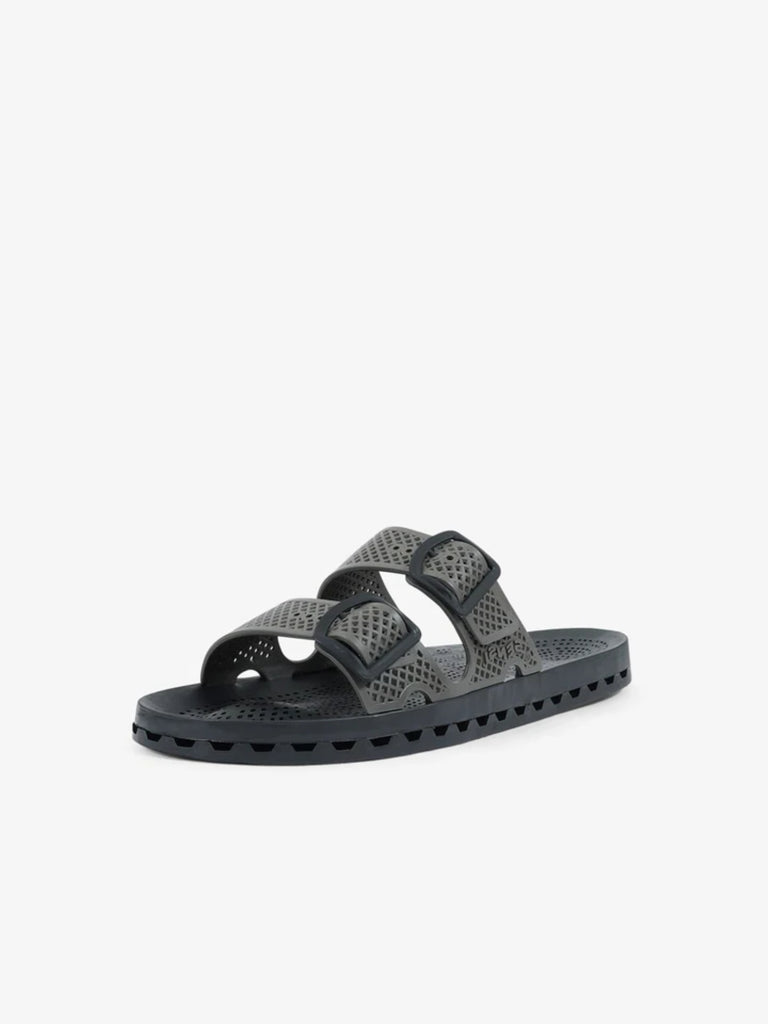 Detalles: La Jolla Urban, tienen una característica dominante; la suela especial de PVC obtenida acoplando mecánicamente una plantilla perforada, a un fondo con canales de escurrimiento. Los orificios de la plantilla en comunicación con los canales del fondo, permiten el drenaje del agua, que a través de las rendijas a lo largo del perímetro de la sandalia es expulsada hacia el exterior.