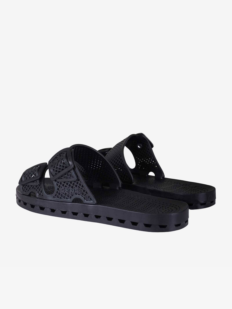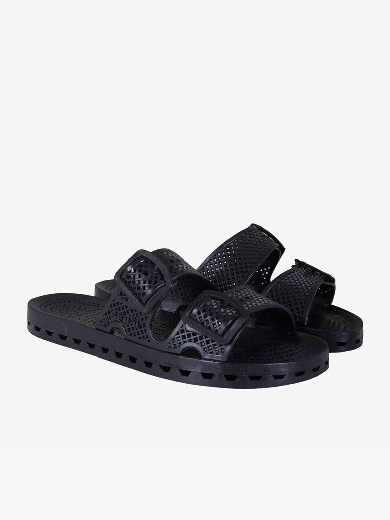 Detalles: La Jolla Urban, tienen una característica dominante; la suela especial de PVC obtenida acoplando mecánicamente una plantilla perforada, a un fondo con canales de escurrimiento. Los orificios de la plantilla que comunican con los canales del fondo, permiten la evacuación del agua, que a través de las hendiduras a lo largo del perímetro de la sandalia es expulsada hacia el exterior.