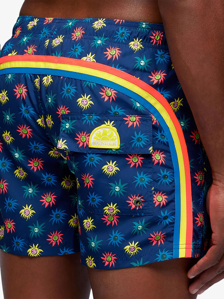Detalles: Bañador con cintura elástica con cordón, confeccionado en tejido ligero Repreve® reciclado a partir de botellas de plástico. Detalle icónico de arco iris en la espalda y microimpresión Lion Sun.