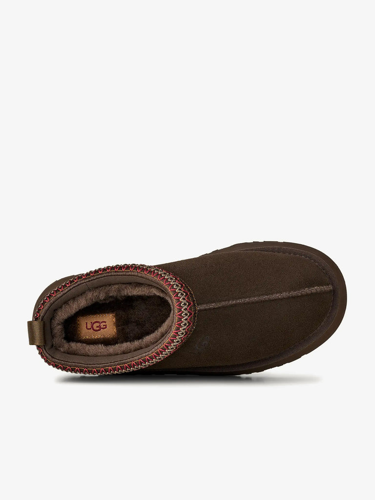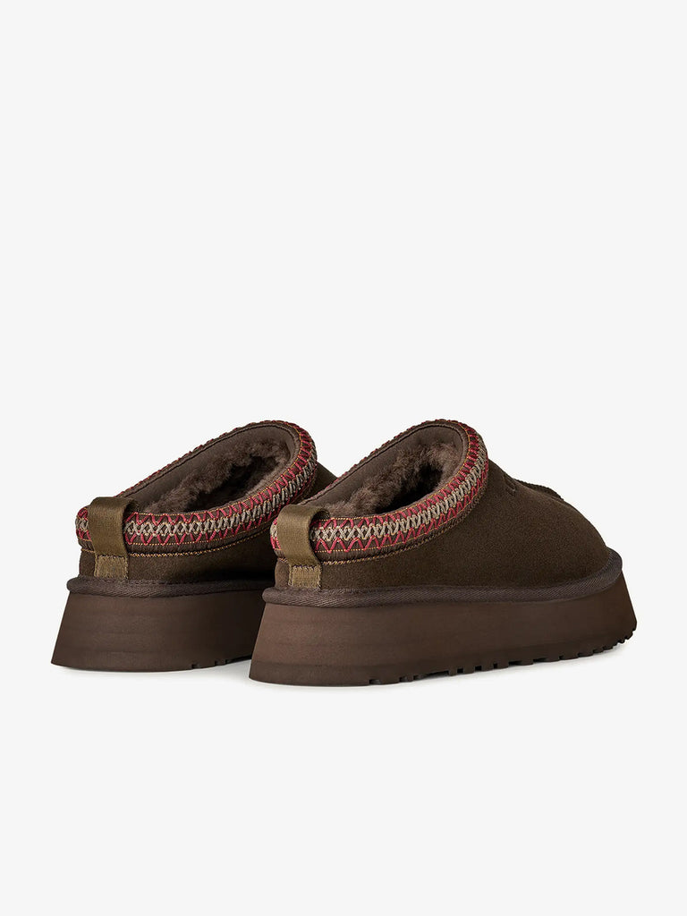 Detalles: ¿Plataforma ligera? UGGbraid? Versatilidad total? Sí, sí y ¡sí! Tazz II mantiene la practicidad y comodidad que has llegado a apreciar en Tazz. La parte superior es de ante liso y está forrada de suave piel de oveja, mientras que la suela de EVA de caña de azúcar presenta una innovadora forma convexa que acompaña todos tus movimientos.