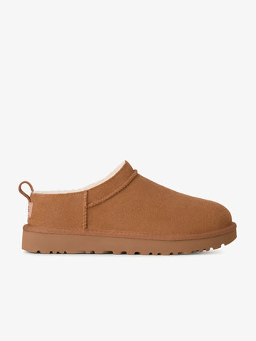 Detalles: La Classic Micro reinventa la querida bota Classic, con un nuevo diseño de perfil bajo (y una comodidad extraordinaria). Presenta una parte superior de ante genuino forrada con piel de oveja supersuave, un material que regula la temperatura de forma natural, dándote la opción de llevar calcetines o no. La ligera suela de EVA de caña de azúcar proporciona una sujeción natural y la hace tan cómoda como una pantufla.