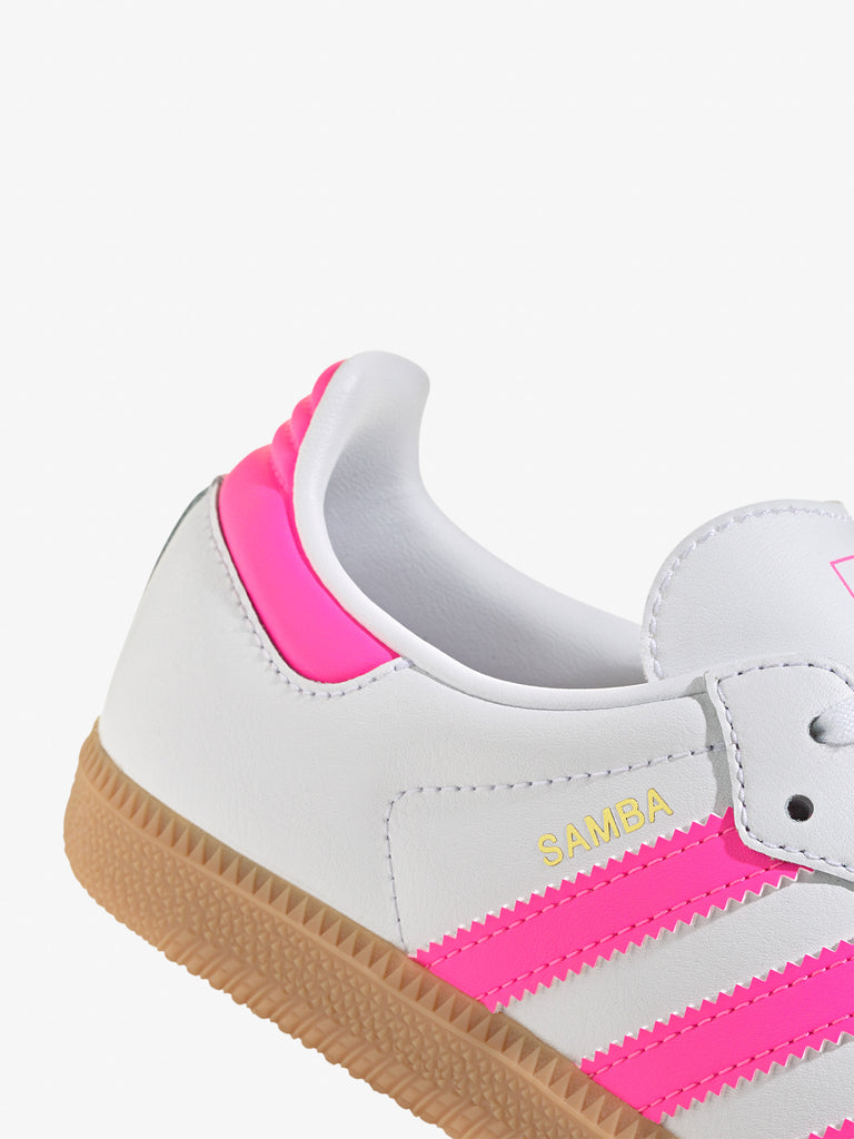 Dettagli: Se si potesse tornare negli anni '60, si vedrebbero calciatori professionisti indossare un paio di adidas Samba proprio come questo modello in versione junior. Beh, quasi. Rivisitate per le nuove generazioni, queste sneaker presentano una morbida soletta interna perfetta per giocare tutto il giorno. La tomaia in pelle, la suola in gomma e le 3 strisce rimangono fedeli al DNA originale.