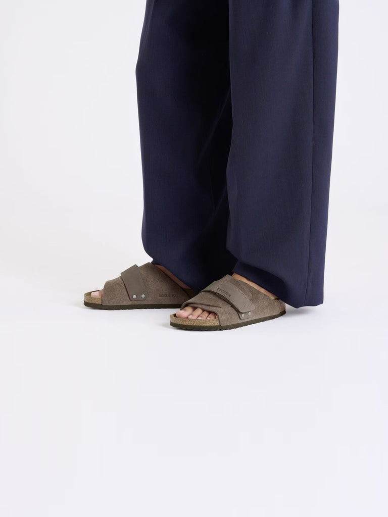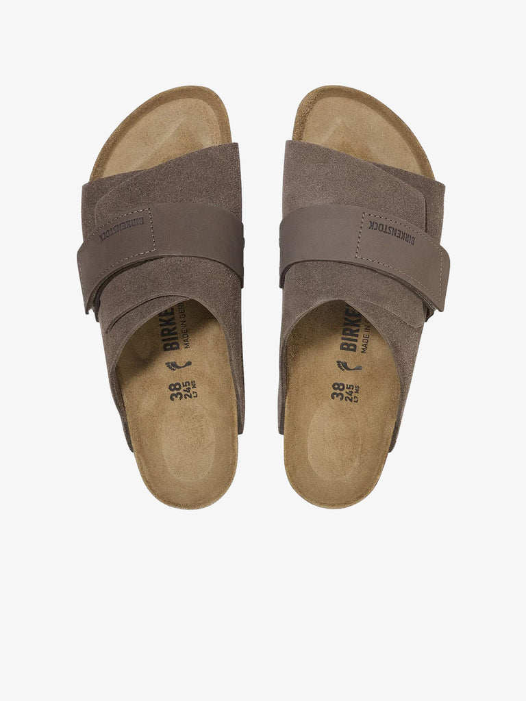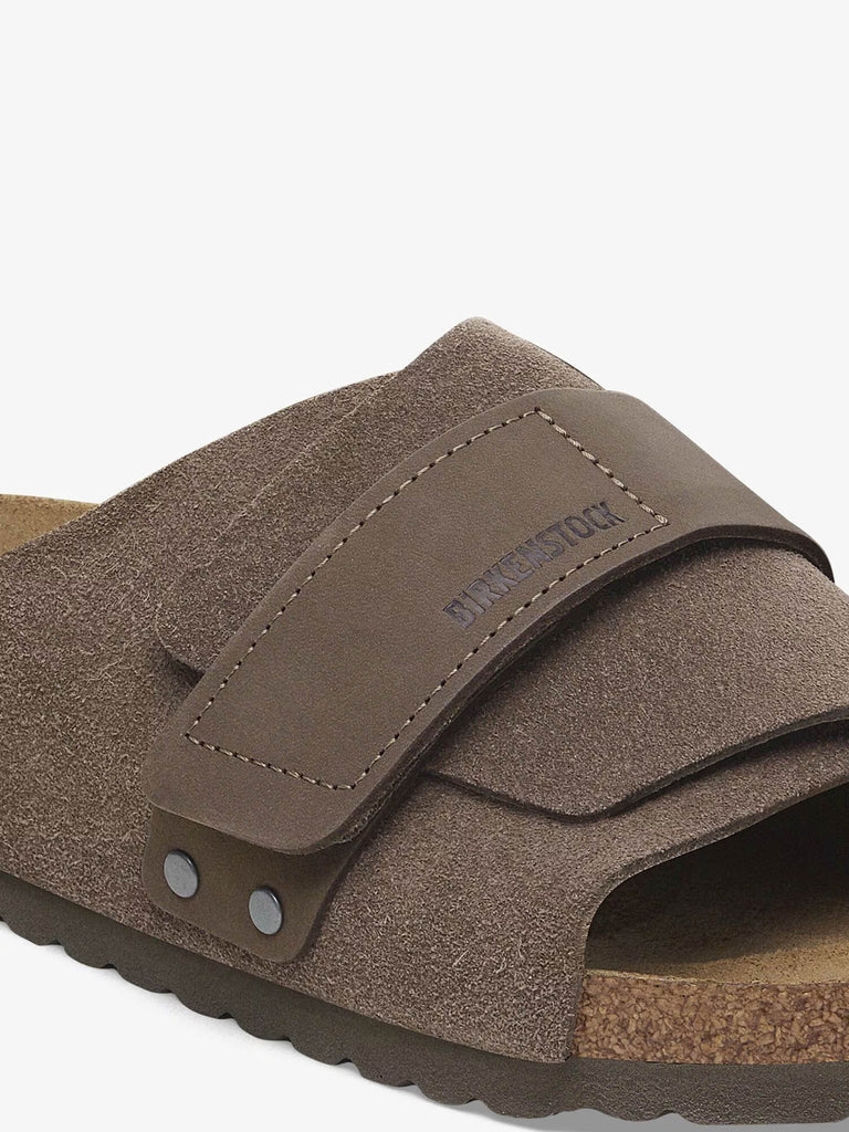 Dettagli: Il modello casual BIRKENSTOCK Kyoto è ispirato dal classico Zürich ed è caratterizzato da un design compatto con chiusura regolabile individualmente che garantisce stabilità ottimale ed è completata da dei rivetti decorativi. La tomaia è composta da pelle scamosciata particolarmente morbida, che aderisce al piede come una seconda pelle, in combinazione a pelle nabuk naturale.