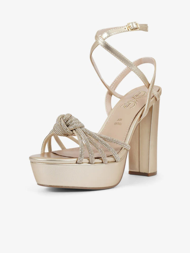 Dettagli: Ottieni il top dei look per tutti i tuoi eventi con questi incredibili sandali con tacco in oro e tutti i loro strass. Nessuno rimarrà indifferente alla tua scomparsa!