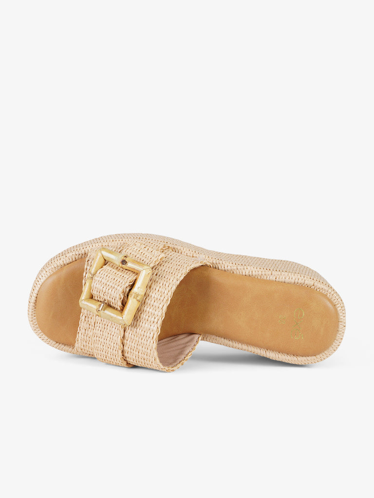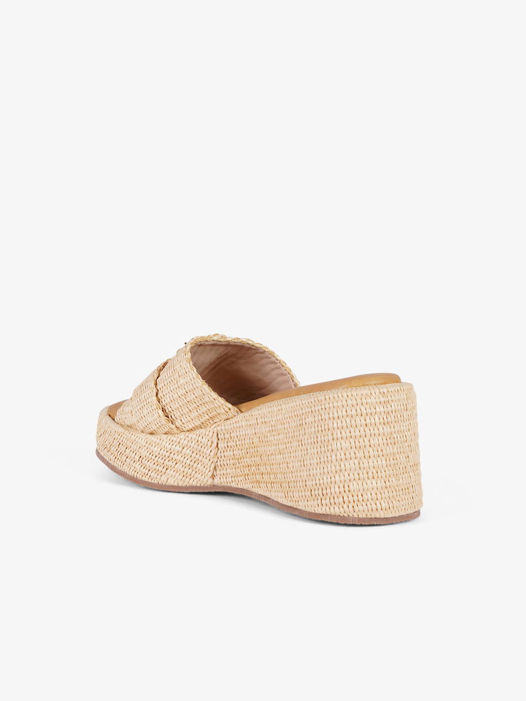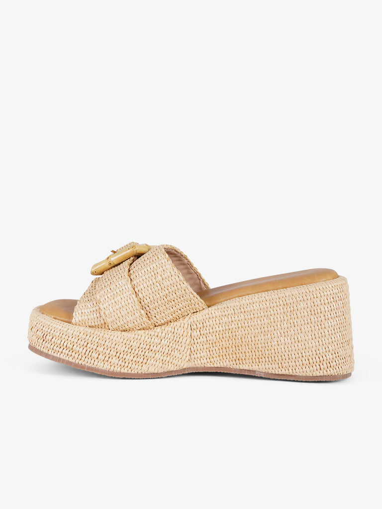sandali con zeppa con applicazioni donna rafia beige