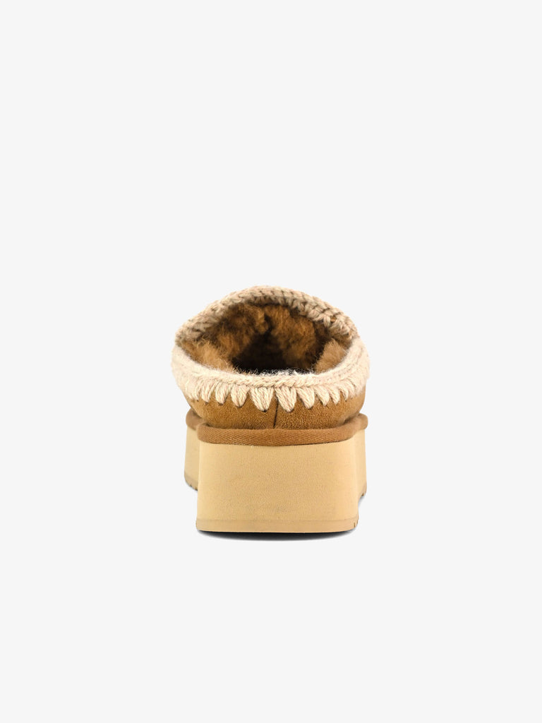 Dettagli: Novità per l'autunno-inverno 2024: il comodissimo clog eskimo slip-on platform è sapientemente realizzato a mano con lussuoso camoscio e presenta le cuciture in lana all'uncinetto distintive di mou. Incredibilmente confortevole e resistente con suola in gomma EVA.