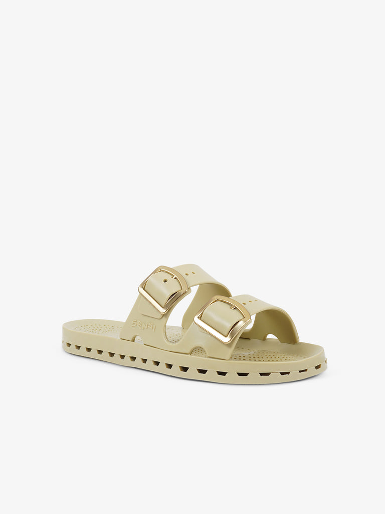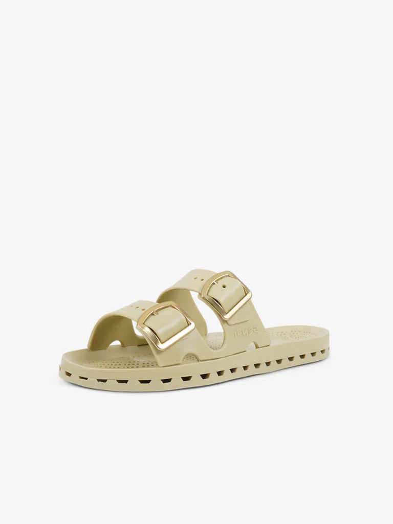 Dettagli: Le Jolla City hanno una caratteristica dominante; la speciale suola in PVC ottenuta dall'accoppiamento meccanico di un sottopiede traforato, ad un fondo con canali di deflusso. I fori presenti sul sottopiede comunicanti con i canali del fondo, consentono lo scarico dell'acqua, che attraverso le feritoie presenti lungo il perimetro del sandalo viene espulsa verso l'esterno. I sandali sono perfettamente conformi per essere riciclati, una volta giunti alla fine del loro utilizzo con un riciclo completo fino al 100%.