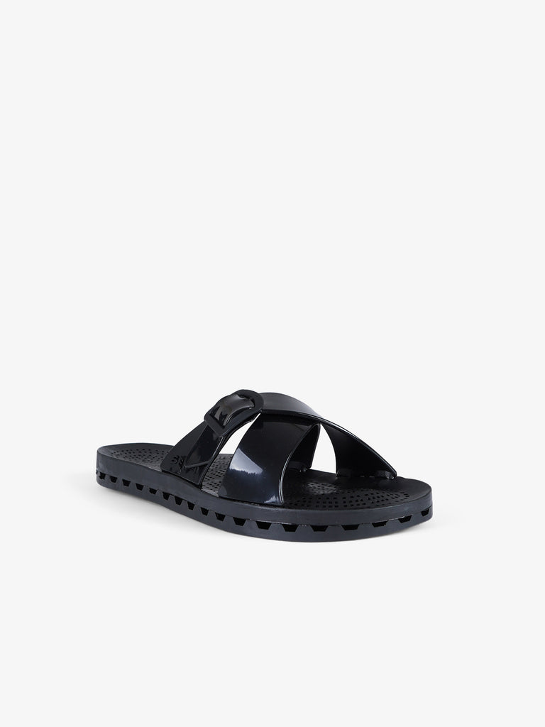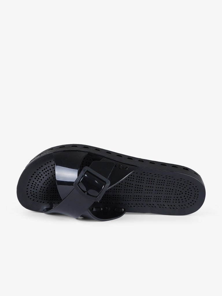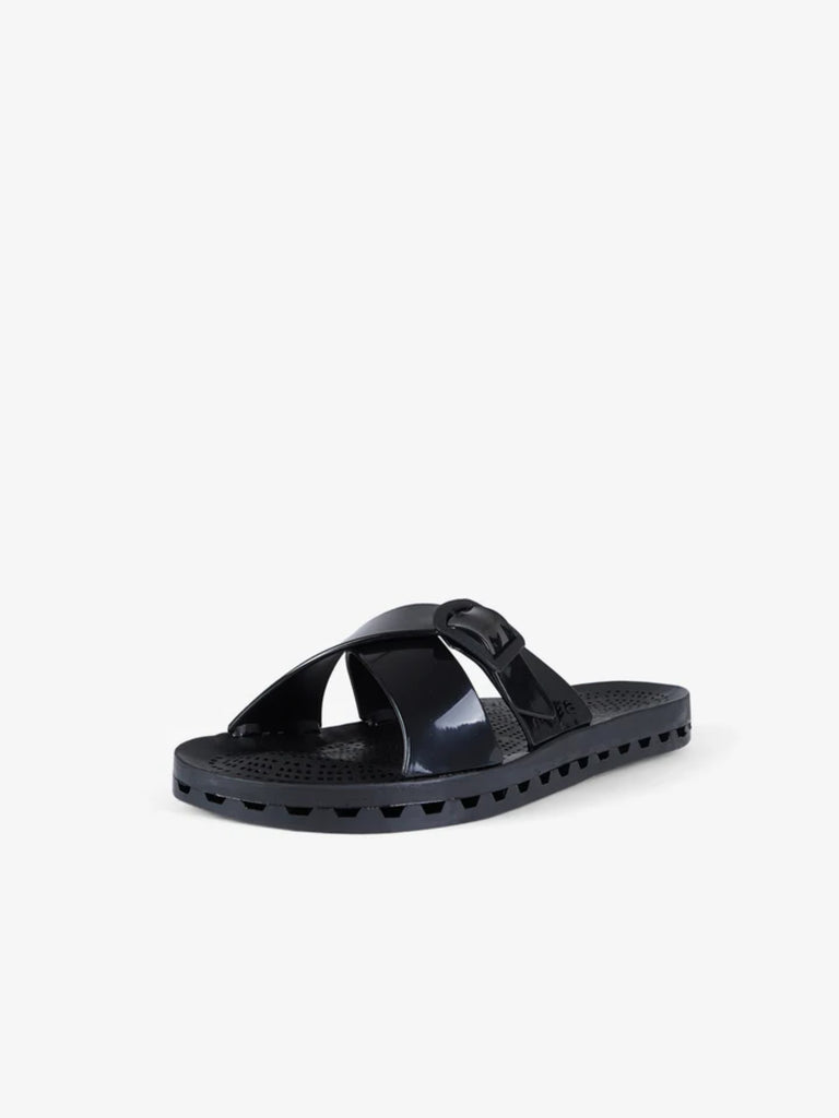 Dettagli: Le Sorrento City hanno una caratteristica dominante; la speciale suola in PVC ottenuta dall'accoppiamento meccanico di un sottopiede traforato, ad un fondo con canali di deflusso. I fori presenti sul sottopiede comunicanti con i canali del fondo, consentono lo scarico dell'acqua, che attraverso le feritoie presenti lungo il perimetro del sandalo viene espulsa verso l'esterno.