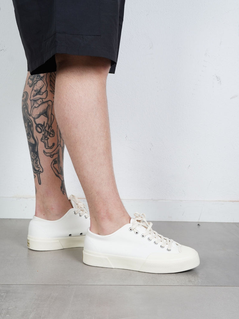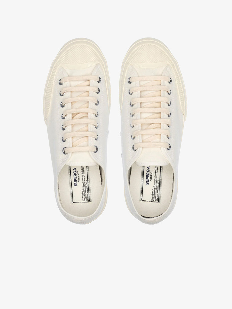 Dettagli: Works è la sneaker Superga Artifact realizzata in tela di cotone leggero e traspirante: lo stile workwear d'ispirazione anni '70, ripreso dagli archivi storici del brand, dà carattere a una silhouette allacciata pulita ed essenziale, con suola a cassetta, punta leggermente squadrata e rinforzi laterali in gomma.