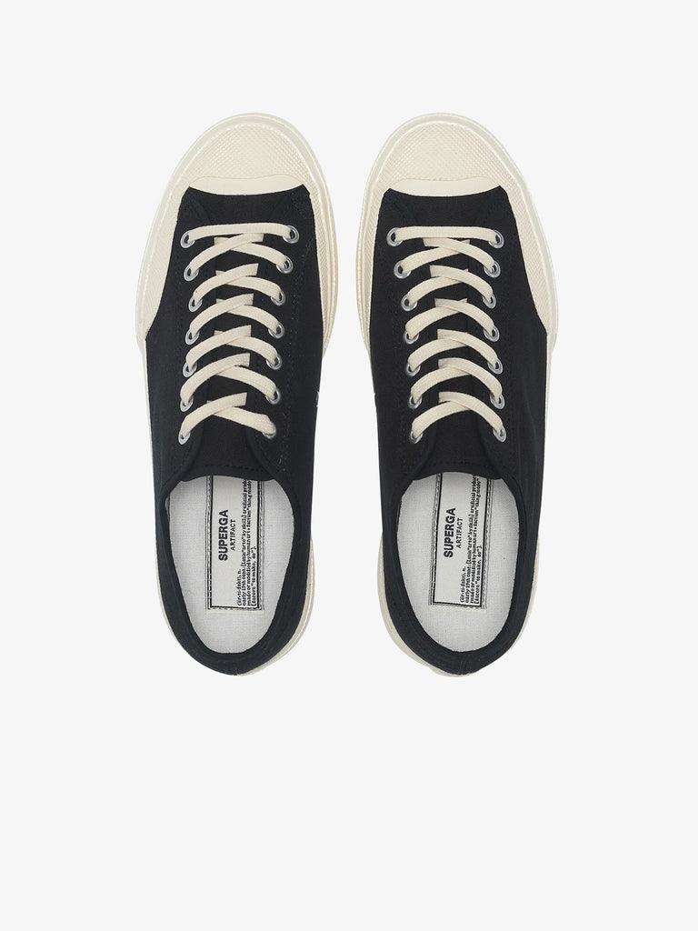 Dettagli: Works è la sneaker Superga Artifact realizzata in tela di cotone leggero e traspirante: lo stile workwear d'ispirazione anni '70, ripreso dagli archivi storici del brand, dà carattere a una silhouette allacciata pulita ed essenziale, con suola a cassetta, punta leggermente squadrata e rinforzi laterali in gomma.